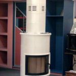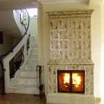 Piec kaflowy z kafli Mez (Niemcy), oryginalne szkliwo w perłowym kolorze. Wewnątrz wkład kominkowy Spartherm Varia 1V, wykonany w technologi stalowo-szamotowej. Produkt jest połączeniem klasyki z oryginalnością. Dzięki jedynemu w swoim rodzaju kolorze oraz ozdobnym kaflom z ciemnym wzorem piec ten będzie idealną ozdobą pomieszczenia, obojętne gdzie go wstawimy. Dumnie będzie prezentował się w salonie z zastosowaniem czerni i bieli w wystroju, jak i uzupełni aranżację wnętrza sypialni. Małe drzwiczki kominka otoczono czarną ramką, która wygląda bardzo estetycznie w połączeniu z perłowa barwą kafli oraz ich błyskiem, a ponadto podkreśla żółte języki ognia oplatające wnętrze pieca.