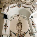 Dostępnych jest wiele kolorów samej bryły pieca. Na życzenie mogą pojawić się również ornamenty zgodne z oryginałem, bądź dowolnie inne wypracowane wspólnie z klientem lub architektem wnętrz. Fajansowy piec gdański o dwóch kondygnacjach, z niszą w górnej części i sceną figuralną w zwieńczeniu, ustawiony na drewnianej malowanej podstawie.