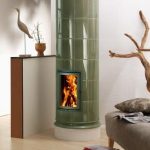 Piec okrągły z kafli Kaufmann w oliwkowozielonym kolorze, wewnątrz wkład kominkowy stalowo-szamotowy. Istnieje możliwość podłączenia masy kumulacyjnej w formie krążków ceramicznych. Dzięki walcowej budowie piec może zostać umieszczony w każdym miejscu wnętrza kuchni, sypialni czy salonu. Biała podstawa przełamuje zielony kolor, który jest kontrastowy do żółtych płomieni ognia. Kafle wykonane na wysoki połysk nadają mu elegancki charakter, który będzie ozdobą każdego pomieszczenia, w którym go postawimy. Pasująca do całości barwa ramy drzwiczek dopełnia oryginalny styl pieca, który będzie wspaniale wyglądał w rustykalnych wnętrzach bazujących na wykorzystaniu naturalnych surowców takich jak kamień, drewno i skóra.