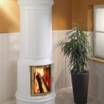 Stylowy piec okrągły z kafli Kaufmann posiada wewnątrz wkład kominkowy stalowo-szamotowy Spartherm – ramka drzwi złoto mat. Dostępna jest możliwość połączenia masy kumulacyjnej w formie krążków ceramicznych. Piec prezentuje się bardzo ciekawie, wnosi do pomieszczenia urok i klasę. Pasuje do wnętrz urządzonych w każdym stylu, również do tych, które nawiązują do modernizmu.
