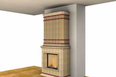 Piec kaflowy zaprojektowany na bazie kafli „dołków” z piecem narożnym z szybą podnoszoną do góry. Ciekawie zdobiony, o ponadczasowym designie, który zachwyci niejednego estetę. Piec ten ma narożny charakter, co ułatwia jego ustawienie nawet w małych pomieszczeniach. Palący się w nim ogień można oglądać z dwóch stron, co daje mu bardziej przestrzenny wymiar. Zastosowanie małych kafli z wyżłobieniami oraz dekoracyjnej korony na szczycie kominka sprawia, że jest on bardzo oryginalną ozdobą do wszelkiego typu pomieszczeń w domu, jak i mieszkaniu. Wysunięta półka przy komorze grzewczej może posłużyć jako miejsce do położenia pogrzebacza czy kawałków drewna, należy jednak pamiętać, że elementy te mogą ulec szybkiemu nagrzaniu w kontakcie z szybą.